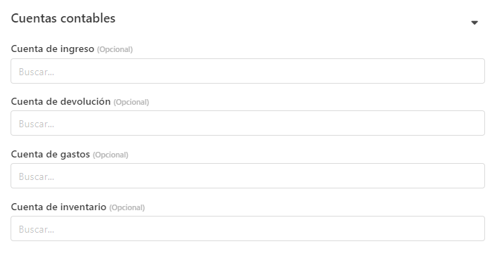 Cuentas contables: Asocia el producto a las cuentas contables correspondientes según las necesidades fiscales y contables de tu empresa.