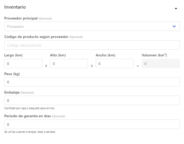 Inventario: Aquí puedes ingresar información clave sobre el producto, incluyendo: