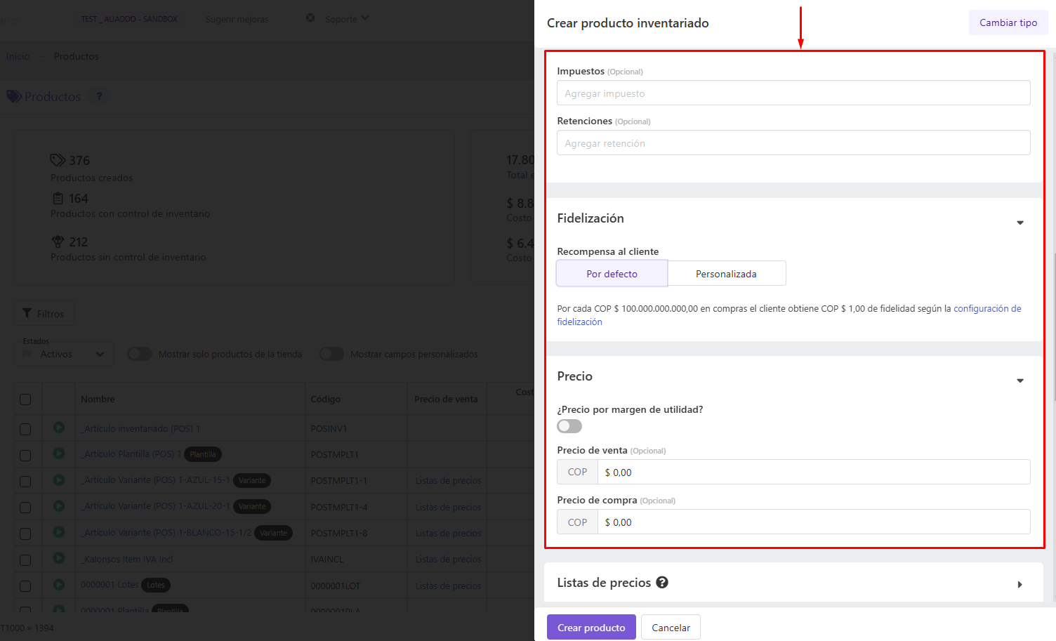 Listas de precios: Establece el precio de tu producto en diferentes listas de precios.