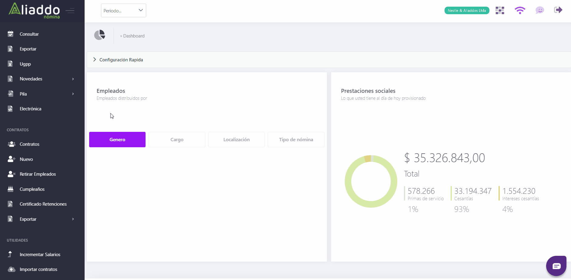 1. Ingresa al módulo "Novedades", selecciona la opción "Prestaciones sociales", luego da clic en "Nuevo".