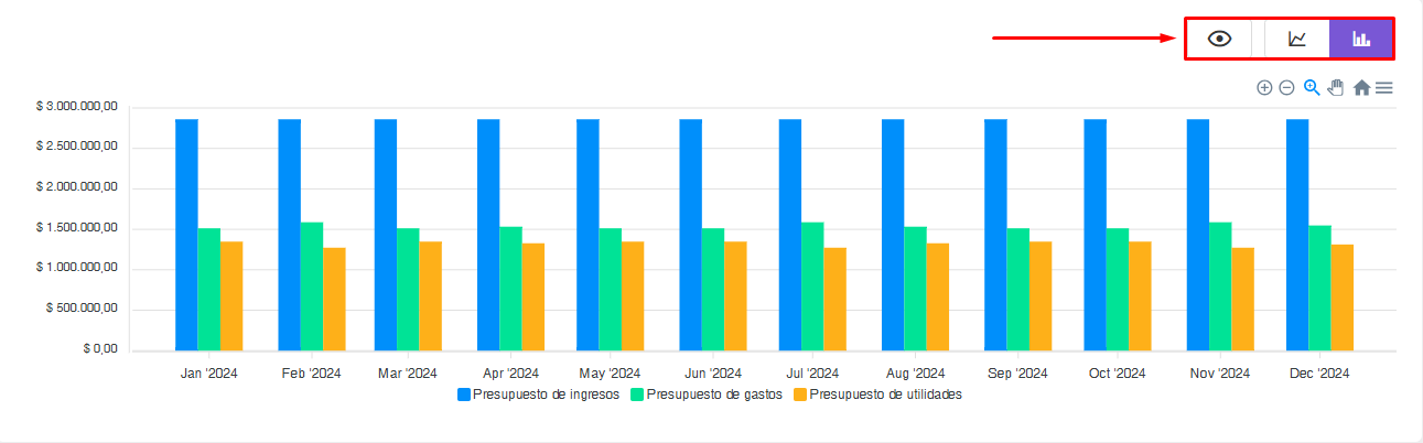 Si tienes varios presupuestos creados, puedes personalizar la visualización del gráfico para enfocarte en los datos que más te interesen.